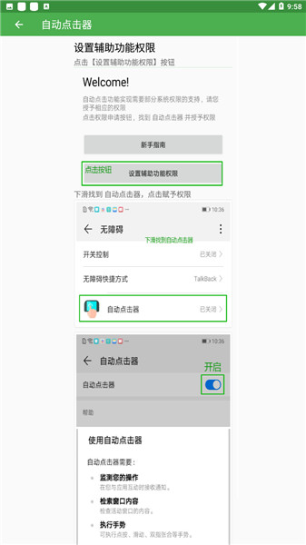 如果应用崩溃后无法执行自动点击,这是系统bug导致等。请禁用Accessibility权限,并重新