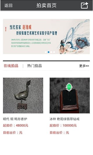 中国书画、当代油画、文房四宝、古玩杂项、陶瓷紫砂、雕塑石雕、美玉对庄、集邮票钱币、藏品等文玩汇萃,艺术家、文玩收藏家、企业家、艺术生分享绘画、雕刻、收藏作品,动态发布文化圈在线展览,拍卖交易!