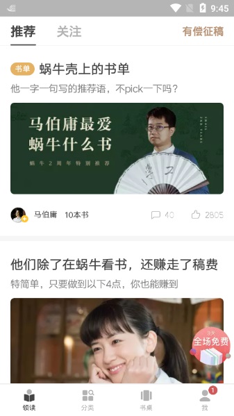 专业领读人阅读书单推荐、针对每本书提供问答互动评论;