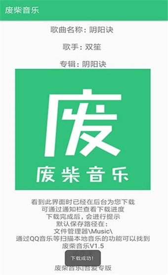 == 废柴音乐支持无损音乐以及付费音乐的下载