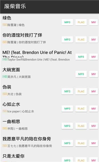 废柴音乐app安卓版,这是一款非常实用的音乐下载软件,功能非常的强大,它能够解析QQ音乐里所有的高品质、无音损以及付费版音乐的下载链接。相较其他软件来说,可能功能都差不多,但是废柴音乐所占的手机内存极小,只有3M左右,正所谓“麻雀虽小,五脏俱全”,虽然内存小,但是功能还是能够与其他同类软件相比拟的。在这里用户不止能够下载MP3模式的音乐,还可以下载mv格式的音乐,只要你想下就能够免费下载,不需要付费的那种哦~若是你喜欢的话就快来下载吧!