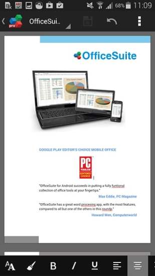 officesuite pro最新版是一款能够帮助你轻松办公、无论走到哪里都可以工作的软件。可以不用在像往常一样拿着电脑那么麻烦了,现在只需要一部手机全部都可以搞定,在外旅行也不会耽误你的工作。功能性强大,是目前兼容性最好的一套针对微软Office办公套件的安卓软件,随身携带的Office文档,是目前很多人都力离不开的文件工具。OfficeSuite Pro支持56种语言,多种快捷键,通过云服务进行保存,传输、共享等,能够同时打开多个文件夹。拥有Excel表格,Word文档等常用功能,解决你的一切办公问题,可以随时浏览你的文档,拥有全新的界面,全新的插入对话框,让你大大的提高工作效率,感兴趣的用户快来下载吧!