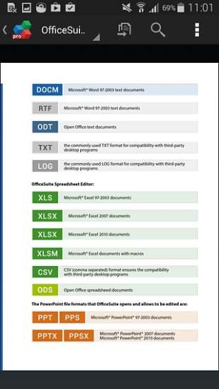 7、OfficeSuite Pro支持旧版微软文档格式(.DOC、.XLS、.PPT)和.ODF格式