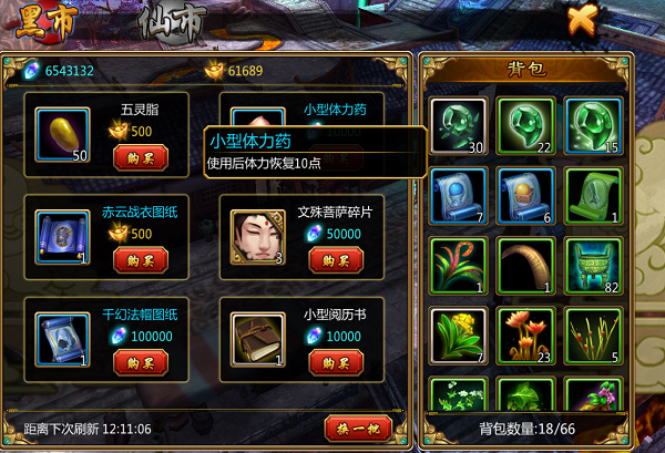 刷新购买黑市中的体力药是另外一个获得体力的办法,没事的时候可以去黑市看看,没准正好就刷出了体力药呢,这种宝贵的资源可是需要果断买下的哦。