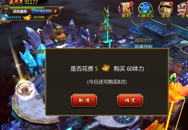 最后的最后,如果您的体力依然不够用,也可以直接付费购买体力,这是最快的获得体力的办法。不过每天能够购买体力的次数是有限定的,想要增加能够购买体力的次数,就只有提高VIP等级了。
