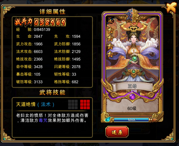 游戏中设置了100多个不同将领,每个将领都拥有独特的技能,还有自由的布阵供您选择。您必须根据每场战役的实际情况进行排兵布阵,合理的安排肉盾,攻击输出,控制,治疗等各个角色,才能取得胜利。战斗场面紧张刺激,双方共有12员武将可以参战。
