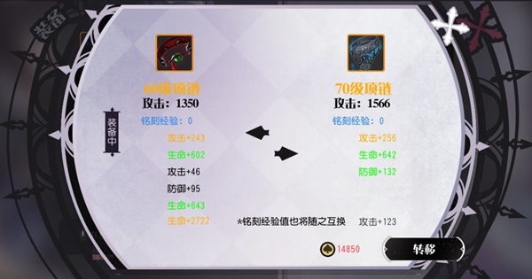 装备是有等级的,每10级一换,那么有的玩家觉得是不是我前期就不要刷装备了,反正升级也要换掉,其实装备系统里面提供了转移系统,可以让你将之前洗炼好的装备或者低级装备的属性转移到高级装备上面,从而避免了高级装备有的时候刚刚入手的时候属性还不如洗炼好的低级装备的尴尬情况,让玩家放心大胆的洗炼。