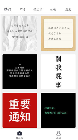 2.文字控app有纯文字的模板,也有带图片的模板,每一个的排版格局都一样