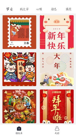 2.图片按照不同类型进行了分类,有节日的、纯文字的、心情的、励志的等等