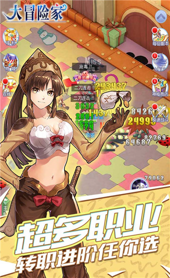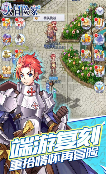 冒险游戏,该游戏的画面非常的精美细腻,加之以Q萌的人物角色使得游戏更具特色。游戏中给玩家提供了剑士、弓箭手、法师等五个职业系统25个职业任意组合,游戏的玩法非常简单,主线任务就是抓捕和驯养从无、坐骑、生命体等等用来提升自己的战斗力陪你一起闯荡这个游戏世界,另外玩家通过挑战boss来获得神器、卡牌、翅膀等等能够提升战斗力的装备,穿上这些装备后就能大大提升自己的战力了,除此之外大冒险家游戏还给玩家准备了400多种战斗技能,让你随意搭配,在不断的提升自己的战力的同时也实在阻止梦魇巫师对这个世界的破坏。史诗级的创作让你感受不一样的手游玩法,超经典的操作模式让你倍感熟悉,还等什么赶紧来下载吧!