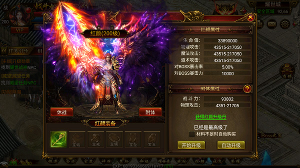 万人同服,行会、阵营、组队,丰富便捷的交流功能,和兄弟一起成为屠龙战神! ===多属性成长=== 中玩家可以通过获得高级、打造神兵利器、合成高级翅膀、提升境界、提升坐骑等获得角色属性提升,更多战力提升方式自由选择
