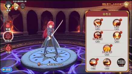 【自在法】界面可对角色的不同技能进行升级。