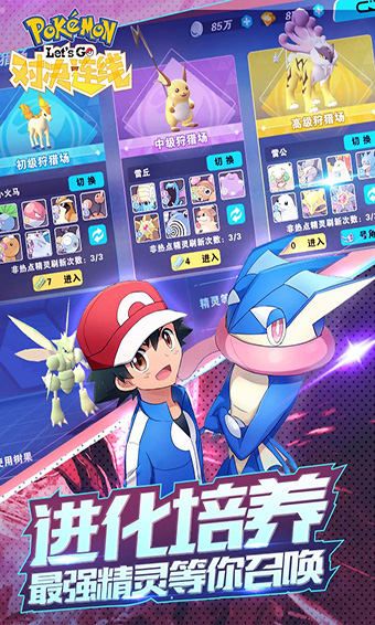 角色扮演游戏,你将成为一个训练家,不断的冒险收集精灵、训练精灵,逐渐成为伟大的高级训练家!丰富多变的海量精灵,各自有着不同性格属性,各种精灵之间相互切磋成长,远古传说精灵惊艳现世!玩家可自由选择精灵,训练精灵,向高级训练家前进。这是一场萌宠的竞技大会,和全球玩家即时连线,零距离对战,全3D华丽战场,让对战热血沸腾,火爆爽快。随机匹配对战、跨服赛季对战、王者之路过关斩将等多样化PVP玩法,每一个玩家都能拥有适合自己的战斗舞台!在庞大的世界地图上,精彩的任务剧情,激烈的战斗冒险,激荡人心的神兽捕捉,带给你高潮迭起的欢乐旅程。亲爱的精灵训练大师们,快来和你的萌宠一起,欢乐养成,战斗冒险吧。