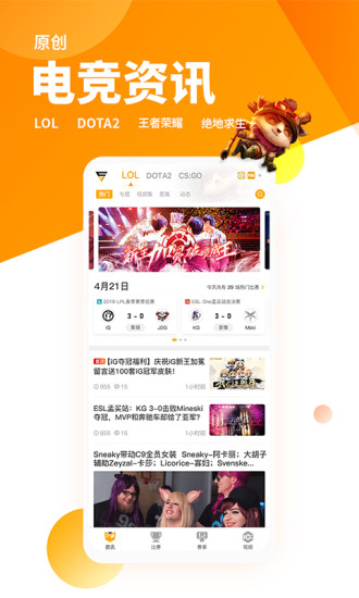 王者荣耀、绝地求生、守望先锋等热门游戏的赛事资讯信息,您可以在线直接观看直播的电竞比赛,点燃用户对电竞比赛的激情,看比赛就会更有感染力;超凡电竞会提供每一场电竞比赛的比分、数据、录像等,都可以快速的查询,了解各个电竞队员的比赛状态;这里还有许多有趣的电竞短视频内容,让您每天乐开怀忘记各种生活烦恼,生活会变得更美妙;超全的比赛日程表信息,让用户可以知道更多比赛的时间,提前进行比赛预约,不错过重要的比赛!