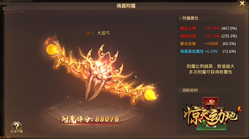 每个魂器都拥有4条附魔属性,附魔属性包含多种多样的特殊属性,激活后可获得大量战斗力提升。消耗附魔石可以激活附魔属性以及提升附魔属性的百分比。