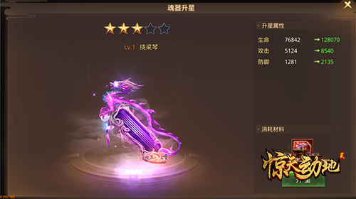 已激活的魂器还可以继续消耗道具来进行升星,每个魂器最多可提升到5星,每提升一个星级可获得大量的基础属性。