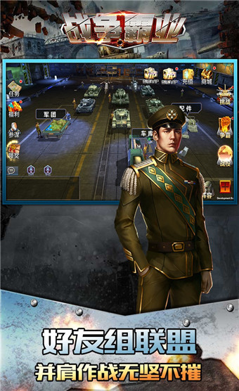 战争霸业安卓版是一款非常好玩的手机坦克大战游戏,该游戏将二战时期的战事作为游戏的背景,游戏中不仅收录了二战到现在的海量的战车,还结合了历史,还原了大量二战时期的经典战役,让玩家在玩游戏的时候还能够了解到当时的战争的史实。游戏中玩家将扮演一名指挥官,带领自己手下的精锐军团组成坦克联盟,为了生存下去玩家必须尽可能的将自己的而实力提升到一个高度,在这里实力才是生存的唯一法则,该游戏的玩法非常丰富自由,玩家可以根据自己的实际情况来选择适合自己的发展路线,在游戏中玩家可以自由搭配自己手下的军团,各种兵种合理搭配成最具有战斗力的阵容,排兵布阵也需要用户拥有相当高的