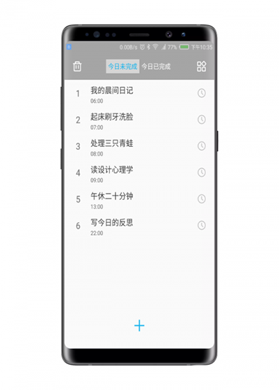 5、拖拽排序:几乎所有的界面均可长按进行拖拽排序哦,而且侧滑可删除/已完成/提醒