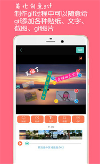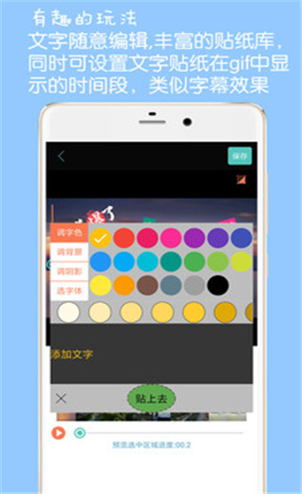三、可添加任意数量的文字、贴纸、自定义图片、GIF图片到要制作的GIF中