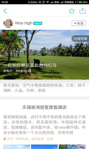 1、这里有成千上万的度假体验师,为用户提供普通人视角的休闲玩乐体验报告。