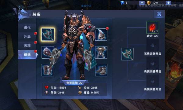 3、当装备升级时,镶嵌的宝石会自动继承到高级装备上。