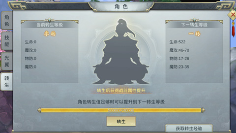 4、完成转生:英雄通过转生能够获得属性值加成,之后还能穿戴上更加高级别的转生装备,从而大幅度地提升战斗力;