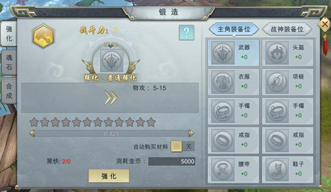 3、强化上限为30级。根据当前强化栏位的强化等级,0~15级需要黑铁矿+金币,16~30需要玄铁矿石+金币。