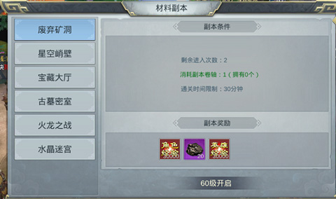 4、除了等级限制,每次进入材料副本需要消耗1个副本卷轴。副本卷轴在地下宫殿里有掉落,不过如果你很着急的话,不妨去礼券商城转转。