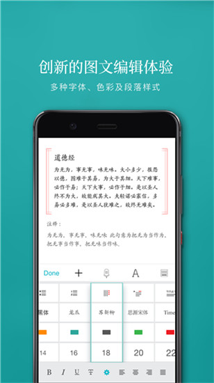 释放你的创造力精心选择和设计了数十种字体、颜色、纸张和模版,支持多种图文混排,让你可以轻松美化图文,激发创作乐趣。