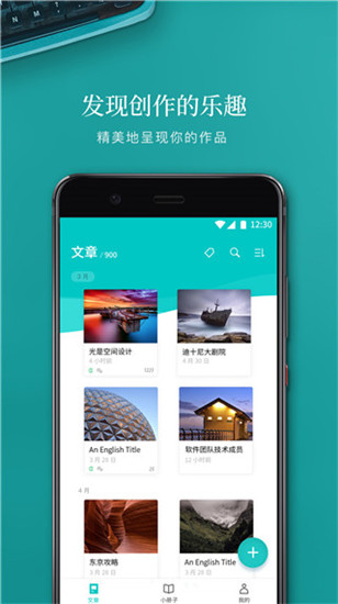 简洁优雅的写作界面,创新的文字排版方式,是世界首创,可以在指尖上就能轻松排版出漂亮的文字。