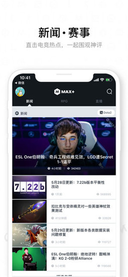 电子竞技游戏玩家提供玩家数据、赛事资料、新闻社区和直播视频,每一个爱游戏,爱竞技的朋友都能在这里了解到自己喜欢的竞技游戏的一手资料,在最短的时间内全面了解各个英雄、兵种的使用方式,稳定有效的提升自己的游戏水平。max+在视频数量上也许比不上虎牙、斗鱼、熊猫等直播平台,但是在游戏质量、体验和激情上,后者加起来也是枉然,它采用大数据算法分析能根据不同竞技游戏的玩法攻略,针对不同用户群体提供大范围意义上的用户心理分析,玩家需要的资讯,细节,这里都有。如果你喜欢玩游戏,那么就一定不要错过这款软件。
