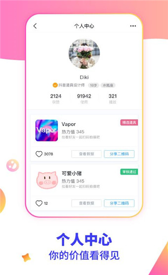 抖音短视频app中去,该软件支持一键抖音号登陆,能够快速为你登陆到抖音然后一键转发上传到抖音中去。在这里用户还能够看到其他用户上传的一些视频制作的技巧或者是一些短视频制作征集活动,若是你有兴趣的话也可以去参加一下,说不定还能够获奖哦~除此之外该软件系统将会自动为你收集统计自己的短视频收获的赞数、播放量以及分享量,能够让用户及时了解到自己的视频热度,还能够管理视频的发布、并且根据用户的浏览兴趣爱好引导用户做出更好的视频特效等等。若是你对此感兴趣的话就赶紧来下载特效君吧!