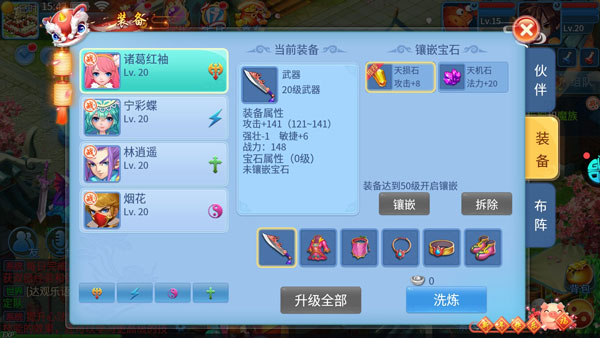 升星:提升装备星级,星级提升增加装备基础属性。装备星级有15级。1~5级星星形象、6~10级月亮形象、11~15级太阳形象。提升星级是有几率的,不过每当提升到5级,装备的星星等级就不会掉了。