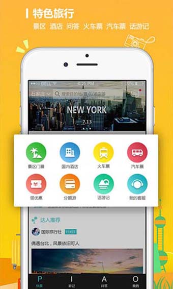 1、特色旅行,火车票、汽车、景区和酒店一站式为你服务;