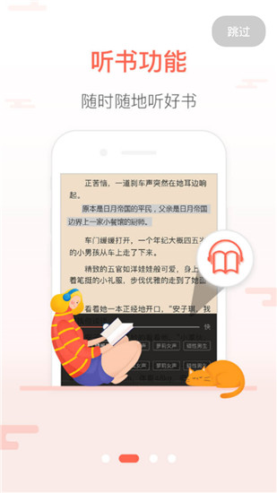 5、缓存下载,离线阅读。连接WIFI时缓存内容,为您节省流量。还有仿真翻页、护眼阅读、百变皮肤功能,让阅读变得更加贴心。