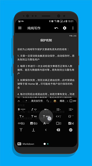 纯纯写作APP安卓版是一款致力于提供 绝不丢失内容、快速、优秀写作体验 的 App。定位为追求写作体验的编辑器 App,好的写作体验应该给用户提供安心的防丢失保护、方便的写作辅助,以及符合直觉并快速的 UI 交互设计。它就是这么一款应用,它提供了历史记录、快捷输入栏、格式化面板、完美的键盘响应,以及流畅的来回状态恢复。令人感到安心,顺滑流畅的写作体验,如你所愿,这就是纯纯写作。我们希望写作能够回到原本的样子:快速、纯粹、随时、有安全感、具备良好的写作体验。它实现了在 Android 上完美的行间距和段间距,它能够使您的文本看起来更加舒适,清晰。同时,它还实现了「快捷输入栏」和「格式化工具」,以及许多喜人的细节内容。最重要的,在使用这个编辑器时,它将会保证您的内容永远不会丢失,除非您主动将它清空。否则即使误操作将文本删除,或瞬间断电,您仍然能够从历史记录或备份中将它恢复。