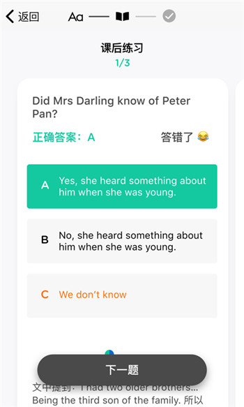 分级阅读:每天10分钟,100天读完多本英文书,根据用户实际的英文水平匹配适合其阅读的书单,真正实现i+1学习理念。