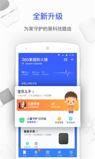 360家庭防火墙界面全新改版多彩温馨,设备卡片功能一键触达