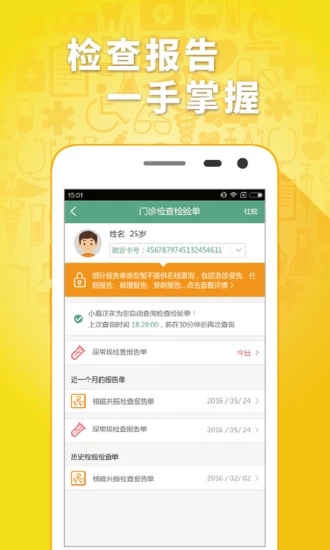 【查报告单】各项检查结果系统自动推送,检查结果一目了然。