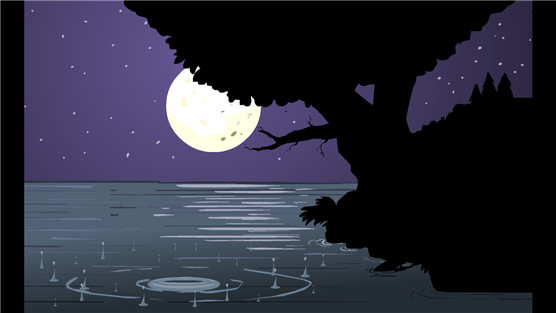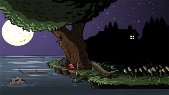第一关:点树枝让树枝掉到水面上,点虫子,点青蛙,让青蛙吃掉虫子,然后点树洞让鸟飞过去,再点鱼竿旁边的树枝,点鱼竿,点水上的陨石,点虫子,借助弹力,飞到第二关。