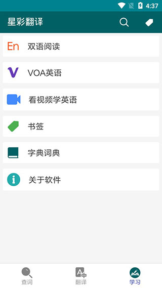 3、学习:为用户提供双语阅读、VOA英语、看视频学英语等服务,助力英语学习