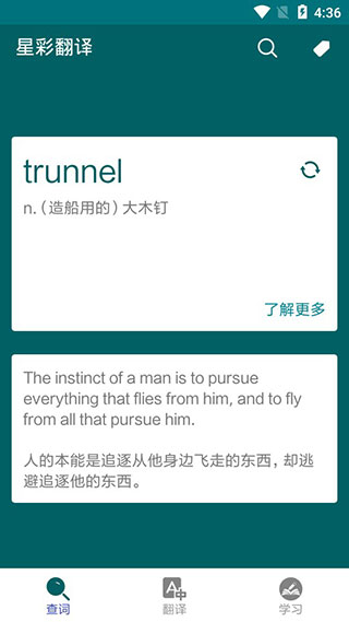 你还可以在星彩翻译app,进行相关的单词的查询哦,让你可以更好的进行学习。