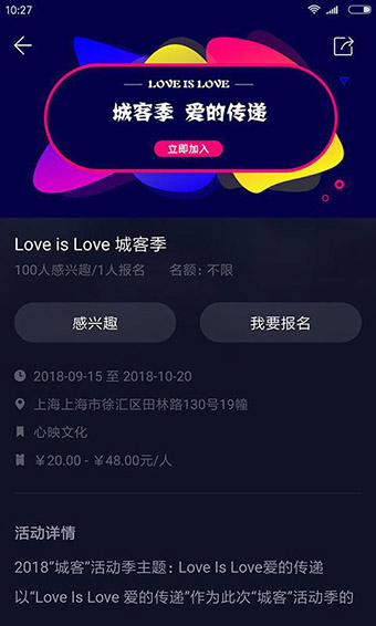 6、同城的主题活动可以在线报名参与,报名要求信息清楚显示;