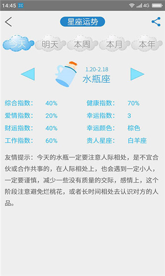 2.可以将自己的运势信息进行分享,好友也能查看