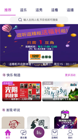逗听FM具有丰富多彩的音频节目和特色鲜明的视频界面;