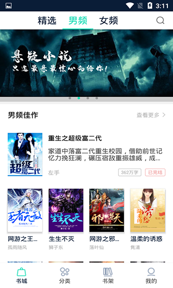 2、大家喜欢的言情、豪门总裁、悬疑惊悚、穿越仙侠等各种热门类型的这里都有;