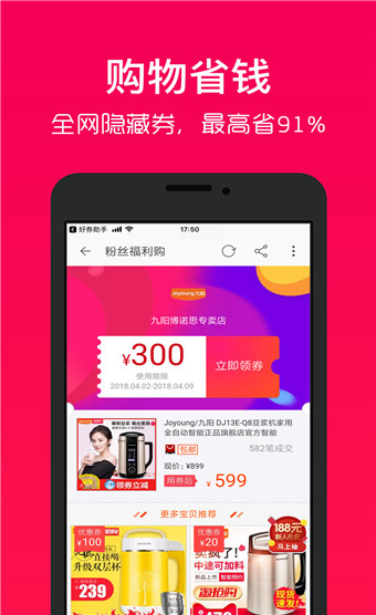 6、好券助手自动帮您找到优惠券,点击即可领取