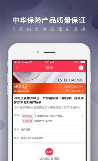 每一件商品都与中国保险公司PICC达成战略合作,为用户购买的商品进行承保