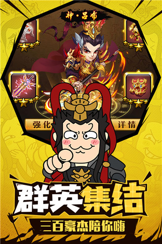 小小三国志以三国历史为主要背景,82名三国著名武将,任君选择。游戏内丰富的武将培养模式,觉醒、进阶层层突破,神装、宝石辅助加成,所有武将之间还有特殊的情缘属性,同一个天下,总存在一些千丝万缕的关联,有墙裂的历史代入感。