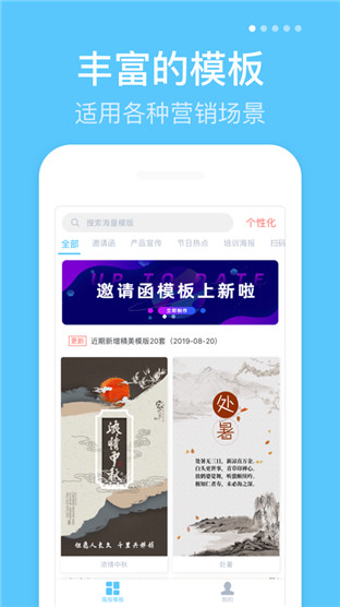 微商海报安卓版是一款非常实用的海报制作生成工具应用,作为一款专门为微商用户群体量身定制的应用,其内置了大量的可以直接进行使用的海报素材,并且可以支持进行各种用途的使用。无论是制作邀请函还是宣传海报等,都可以轻松的满足你的需求。简单的操作让你甚至短短的几分钟就能够完成一张海报的制作,精美的模板可以根据需求进行挑选。多种类型进行了精确的分类,让你可以根据自己的想法迅速挑选出满意合适的模板。无需任何复杂操作,你只需要讲文字内容按照自己想要的排版,在模板上进行排列即可,颜色等属性可以根据需求来进行调节。完成制作之后可以一键分享到朋友圈或者发送给好友,轻松的完成一张海报的制作,让你可以更加高效的进行营销计划。微商海报app多种精美模板按照分类整齐排列,轻松找到符合要求模板,一键使用超便利。